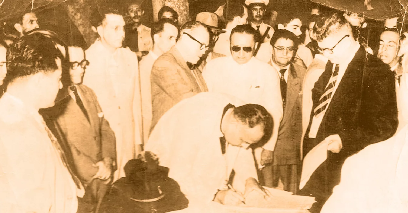 Así fue la colocación de la primera piedra del edificio de la Cámara de Comercio en el año 1960.