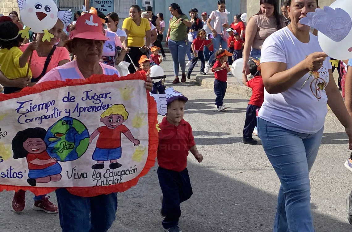 Unos 100 niños de preescolar de la escuela Juan Guillermo Iribarren, participaron el lunes 27 de octubre en la caminata por la conmemoración del mes de la educación inicial, inspirados en el lema «Tiempo de jugar, compartir y aprender en paz». Durante la semana participaron de la proyección de películas, juegos tradicionales, elaboración de murales, finalizando este viernes, 31 de octubre, con un compartir.