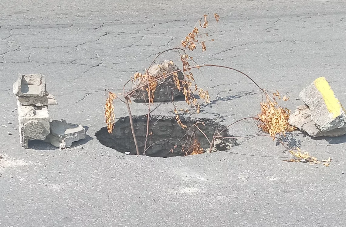 El origen del problema, que lleva al menos dos semanas sin solución, se debe a una fisura en la tubería matriz de las cloacas. De este tubo han estado brotando aguas negras que han dañado el asfalto.