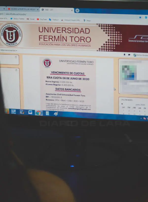 En la universidad Fermín Toro (UFT) el descontento de la gran mayoría de universitarios es gigantesco. La comunidad estudiantil señaló que no pueden cancelar montos que sobrepasan los 40 dólares o su equivalente en bolívares. Jorge García, quien estudia octavo semestre de Comunicación social, señaló que la primera cuota tiene un costo de Bs. 8 millones 400 mil. «De verdad que estoy haciendo el esfuerzo para cancelar la cuotas para poder graduarme, pero con esos precio voy a salir raspao», dijo.