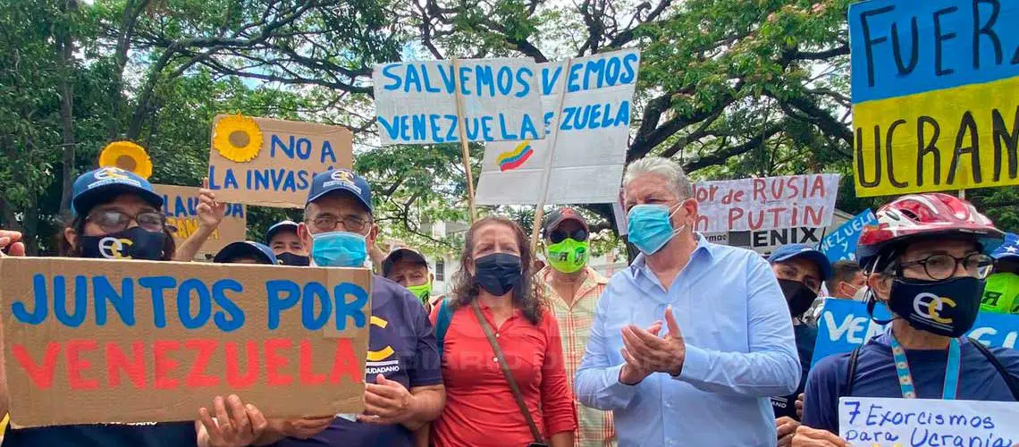 Durante la concentración, Ramos señaló al presidente Nicolás Maduro de ser «cómplice de la masacre» que comete Putin en Ucrania.