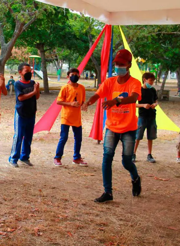En el parque del Este los niños pudieron jugar un rato con recreadores haciendo uso del tapabocas.