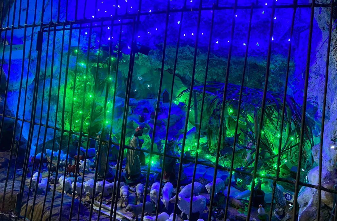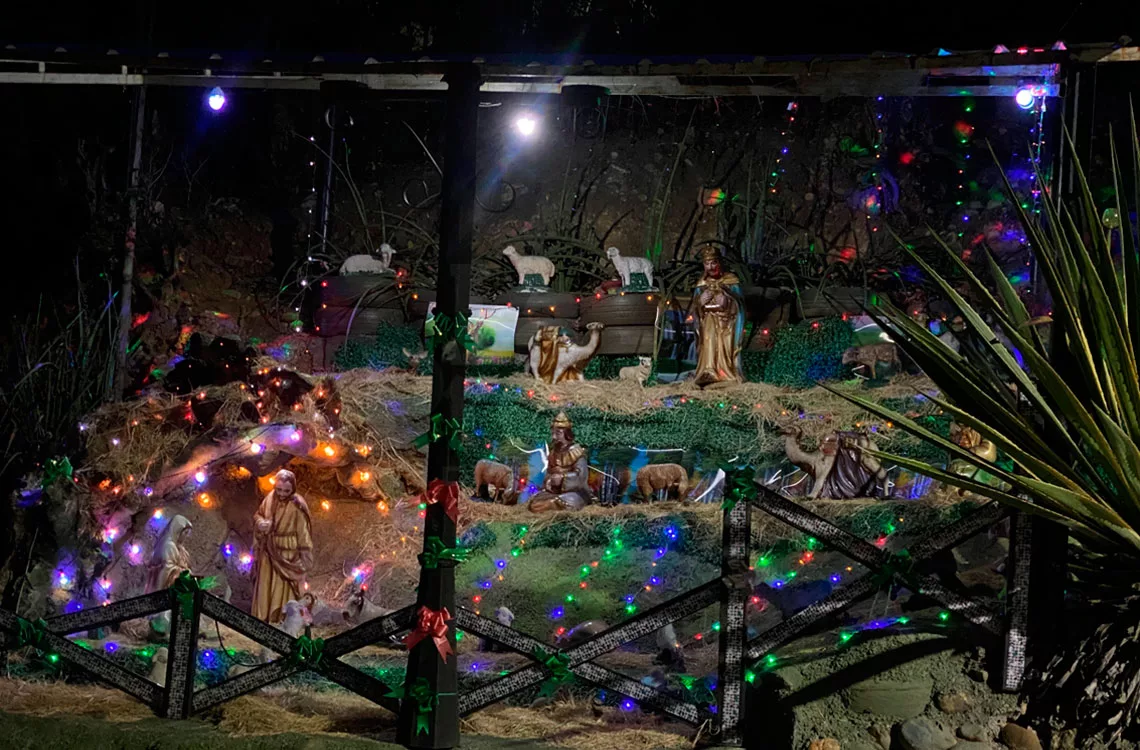 Al subir por la Cuesta Lara, desde la Ribereña, a pocos metros de la plaza de esta comunidad, está un llamativo pesebre con María, José, el Niño Jesús, los tres Reyes Magos y ángeles esculpidos por artesanos, así como un»riachuelo plateado» elaborado con CDs que junto a un proyector con juego de luces realzan el concepto escénico plasmado por la señora Socorro Barrios, su esposo y vecinos.
