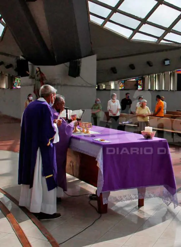 La homilía en la Catedral de Barquisimeto empezó a las 9:00 am. El acceso fue por una de las puertas laterales, para evitar más aglomeraciones en la entrada principal. A todos les aplicaron gel antibacterial y se ubicaban 4 por cada banco. Para comulgar se levantaban, respetaban el 1,5 metros de distanciamiento y el párroco daba la hostia en la mano. No hubo contacto directo, porque hasta el abrazo representativo de la paz, fue individual y sin moverse del sitio.