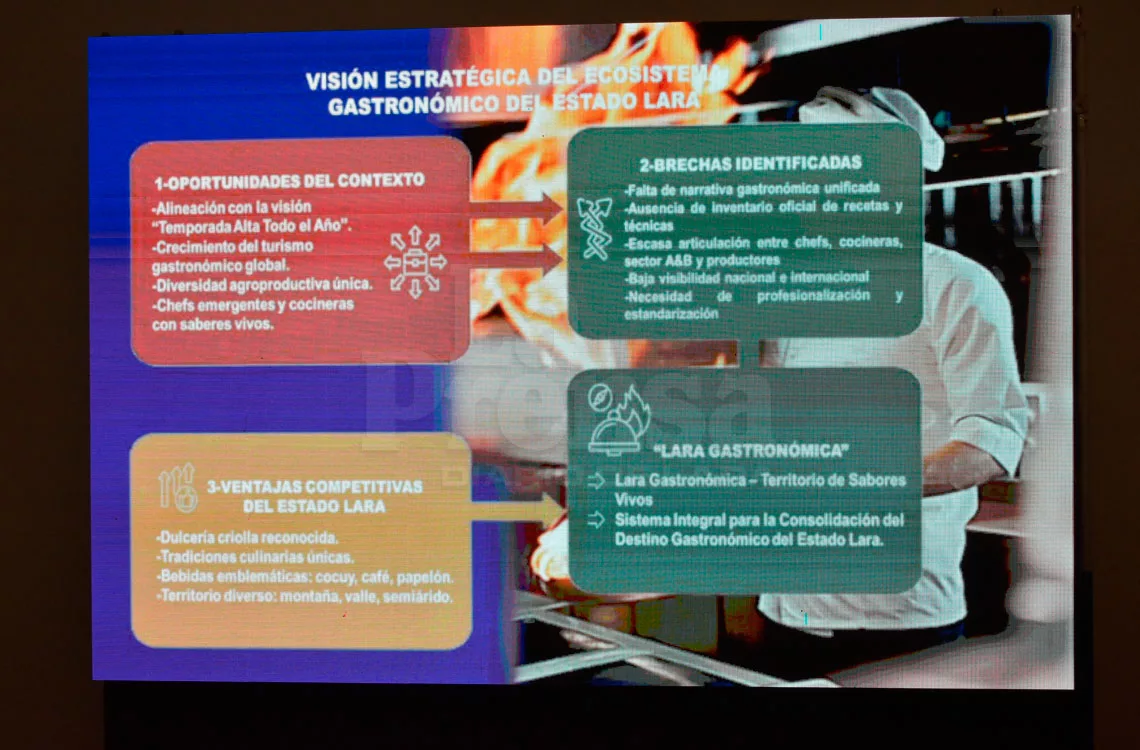 «Queremos vender a Lara como un destino gastronómico, tratando de posicionarnos como líderes de Venezuela, integrando tradición, innovación, turismo, integridad. Este proyecto une y convoca no solamente a los empresarios dueños de restaurantes e instituciones públicas, sino a una serie de profesionales como chefs, cocineros, tradiciones, comunidades, artesanos. Queremos articular con las universidades, porque son las formadoras de quienes desarrollan las actividades turísticas».