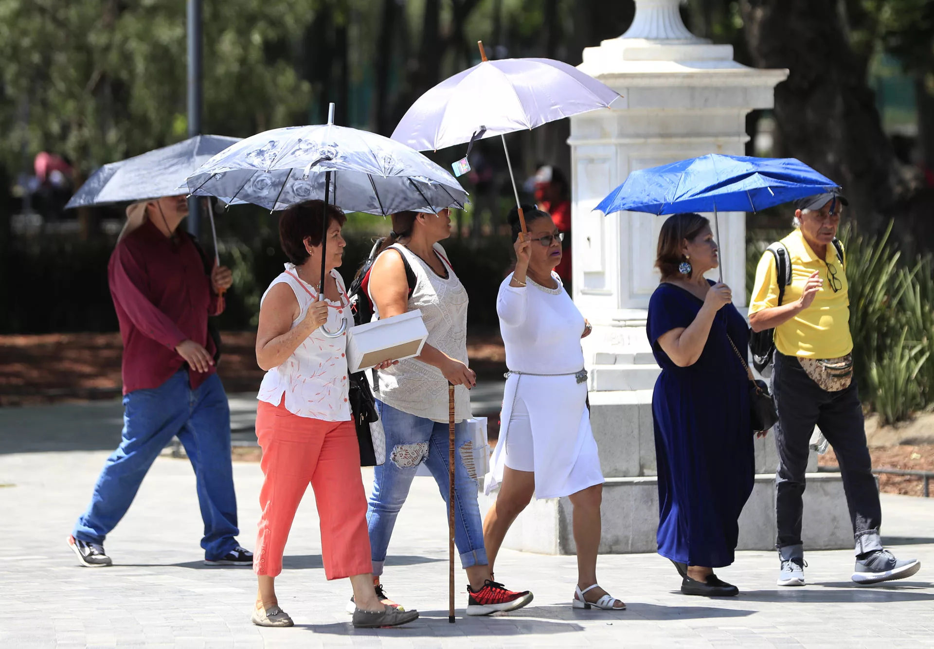 Personas se protegen del sol con sombrillas, en la Alameda Central la Ciudad de México (México), en una fotografía de archivo. EFE/ Mario Guzmán