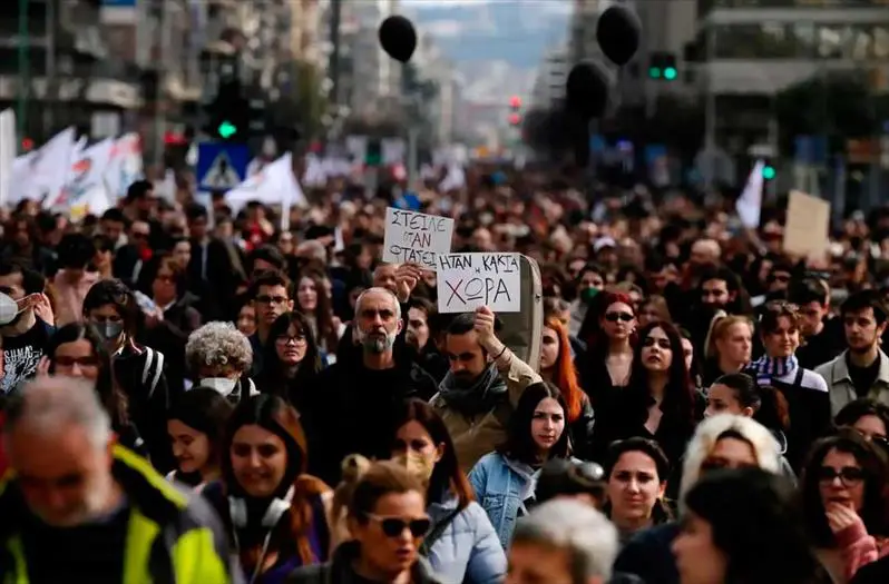 Grecia lleva viviendo protestas multitudinarias ya hace casi dos semanas debido al accidente que se produjo la noche del 28 de febrero, cuando un tren de pasajeros chocó frontalmente con uno de carga al norte de la ciudad de Larisa dejando 57 muertos, en su mayoría jóvenes universitarios.