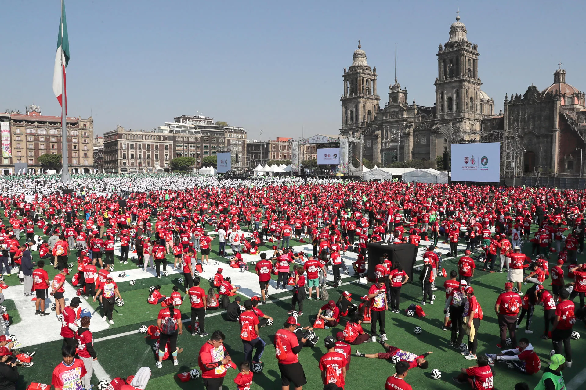 La Ciudad de México alcanzó este domingo un nuevo hito al obtener el Récord Guinness a la «Clase de fútbol más grande del mundo». El evento, realizado en la Plaza de la Constitución, reunió a 9.500 personas que demostraron su dominio y habilidad con el balón de manera ininterrumpida. Aunque las autoridades de la capital proyectaban una asistencia superior a los 10.000 participantes, la cifra final fue suficiente para certificar oficialmente la nueva marca internacional.