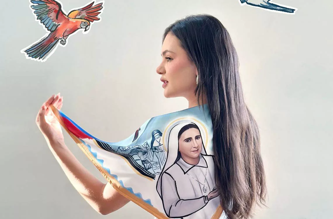 Ana Guédez, licenciada en diseño integral, ha creado una pañoleta a la que ha bautizado como “un pañuelo de fe”, donde ha plasmado las figuras de los próximos santos venezolanos con fondos sobre su vida y obra. Se trata de una tela de seda de 70 centímetros de largo por 70 de ancho, con un contenido significativo para la joven diseñadora.
