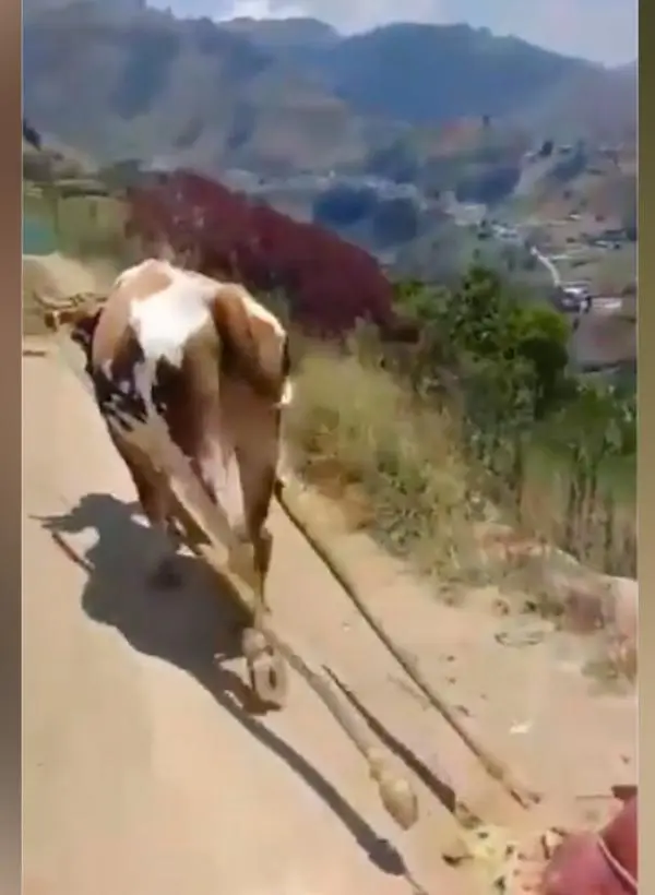 A través de res sociales comenzó a circular un vídeo donde se observa como unos bueyes trasladan la mercancía en La Grita, estado Táchira.