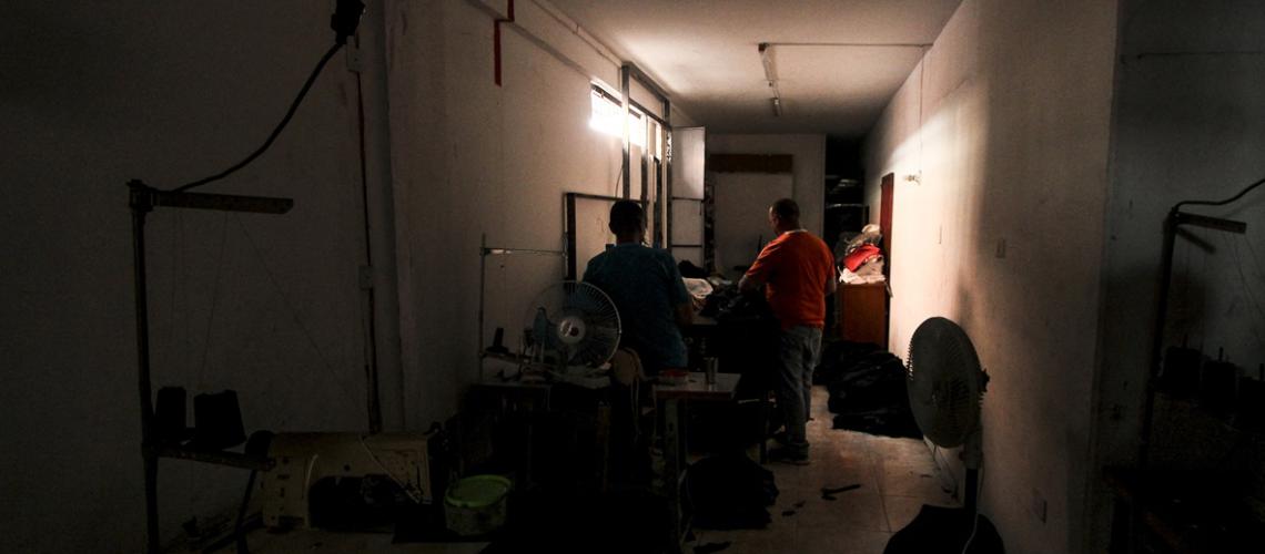 AFP | LA PRENSA DE LARA.- Trabajadores de una fábrica de jeans en la frontera de Venezuela con Colombia juegan cartas mientras esperan retomar la producción, detenida por más de dos horas por uno de los cortes eléctricos que desde hace años apagan la actividad industrial en la zona.