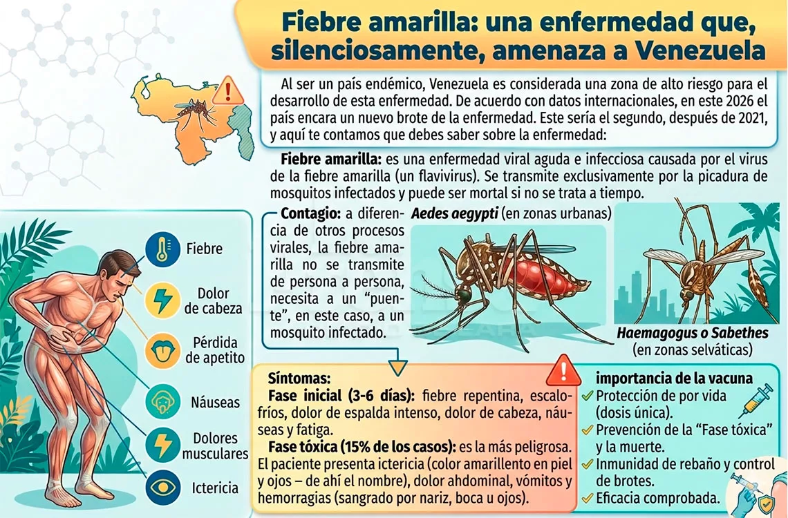 Desde mediados de 2025, en América Latina fue declarada una emergencia sanitaria por el brote de esta enfermedad. La fiebre amarilla, durante años, fue una enfermedad endémica en el estado Bolívar, pero esta realidad cambió. En 2021 hubo casos en Monagas y otros estados, y en este 2026 hay reportes de nuevos brotes de una enfermedad que, de pronto, se convierte en una amenaza epidemiológica del país.
