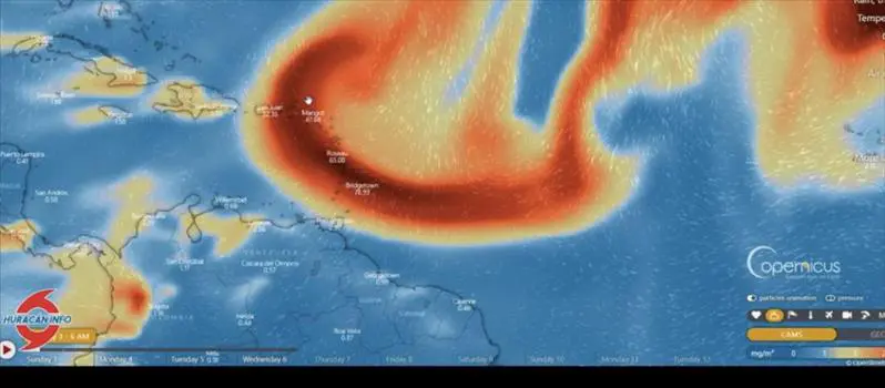 Agencias | LA PRENSA DE LARA.- El Instituto Nacional de Meteorología e Hidrología (Inameh) divulgó este jueves 7 de octubre un material gráfico en el que puede apreciarse el desplazamiento por el Caribe de la nube de dióxido de azufre procedente del volcán Cumbre Vieja, en la isla canaria de La Palma, reseña .