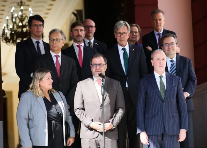 “La presidenta encargada ha transmitido un mensaje muy claro: que en el marco del respeto, en el marco de la igualdad de los Estados, nosotros estamos dispuestos a avanzar en una agenda nueva, una agenda intensa de trabajo para el bienestar de ambos pueblos, de todos los pueblos de Europa y de Venezuela”, señaló Gil en una breve declaración.