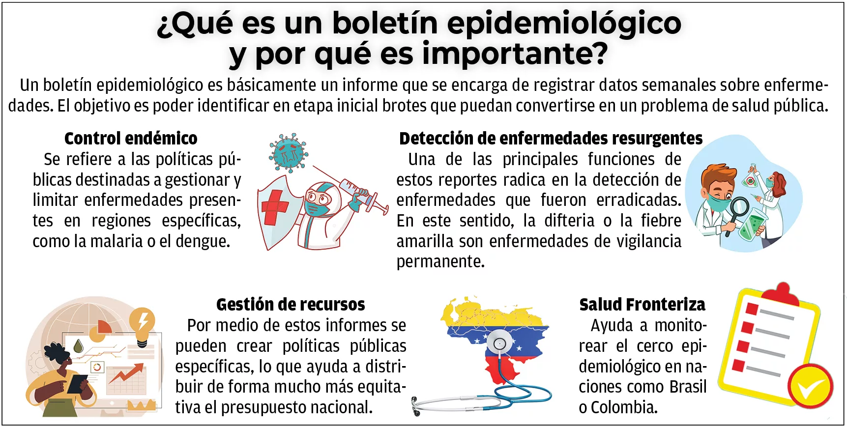 Tan preocupante es la situación epidemiológica en Venezuela que los especialistas consideran que, el simple hecho de no contar con este tipo de reportes, hace que se improvise en cuanto a la creación de cercos epidemiológicos o se falle en la elección de políticas de salud públicas, una situación que abona el terreno para el brote de enfermedades o la reaparición de enfermedades erradicadas.