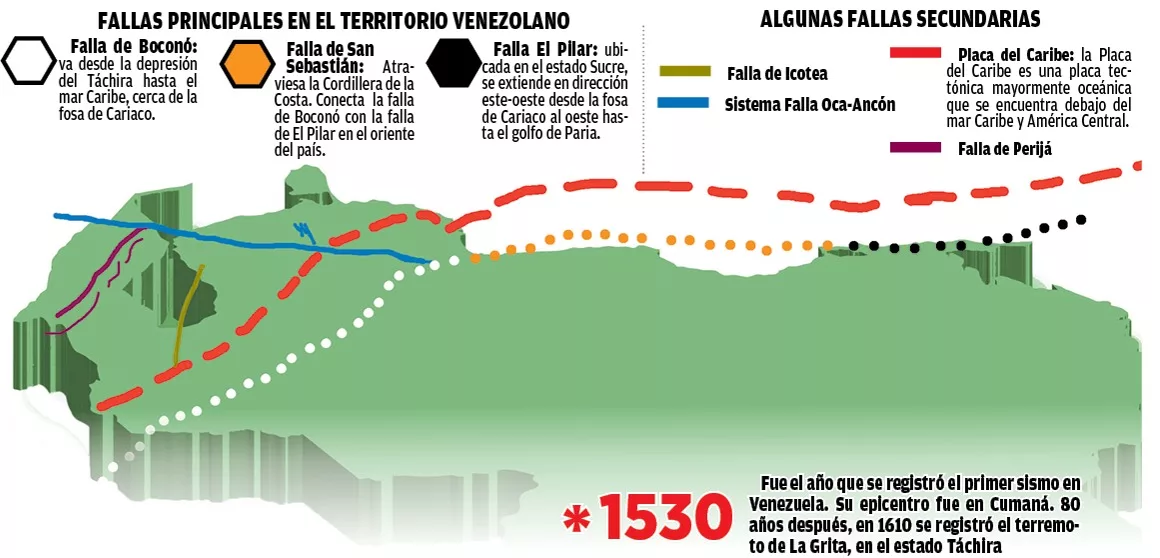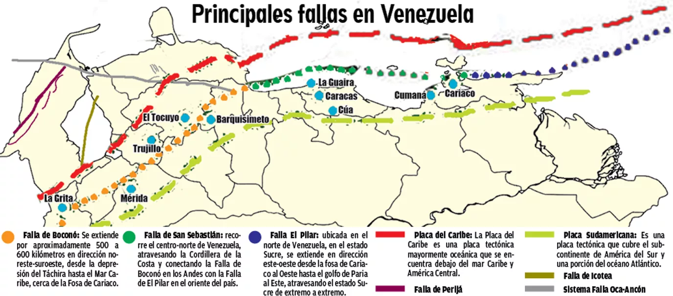 Feliciano De Santis, presidente de la Sociedad Venezolana de Geólogos, indicó que además de este sistema principal de fallas, el país tiene más de una treintena de fallas secundarias.