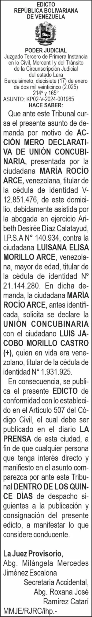 PublicidadAVISOS, EDICTOS Y REGISTROSPor Redacción La Prensa de Lara- octubre 18, 2024FacebookTwitterWhatsAppTelegram REGISTROSSimplifica la gestión de tus archivos legales con nuestro portal. Publica, consulta y comparte tus documentos de forma rápida y seguraTRIPLE POPULARCHAO JEFECHANCE EN LINEAEDICTOSAviso 13-01-26Aviso 13-01-26Aviso 13-01-26Aviso 09-01-26 EtiquetasavisosedictosPublicidadFacebookTwitterWhatsAppTelegram Noticias relacionadasPOLÍTICAS DE SEGURIDAD APP LA PRENSA DE LARA noviembre 24, 2025 No te pierdas LocalesRestaurantes en Barquisimeto ajustan estrategias para evitar sucumbir Ana Uzcátegui - enero 13, 2026 El mayor reto para los restaurantes de la capital larense es mantenerse con precios asequibles y servicios de calidad.La hipertensión sigue reinando en las consultas médicas del estado Lara enero 13, 2026 Igarra: Reinicio de clases con poca asistencia enero 12, 2026 El lanzamiento de la primera Barbie autista amplía la línea inclusiva de Mattel enero 12, 2026 Redes socialesFacebookInstagramTelegram YoutubeWhatsapp
