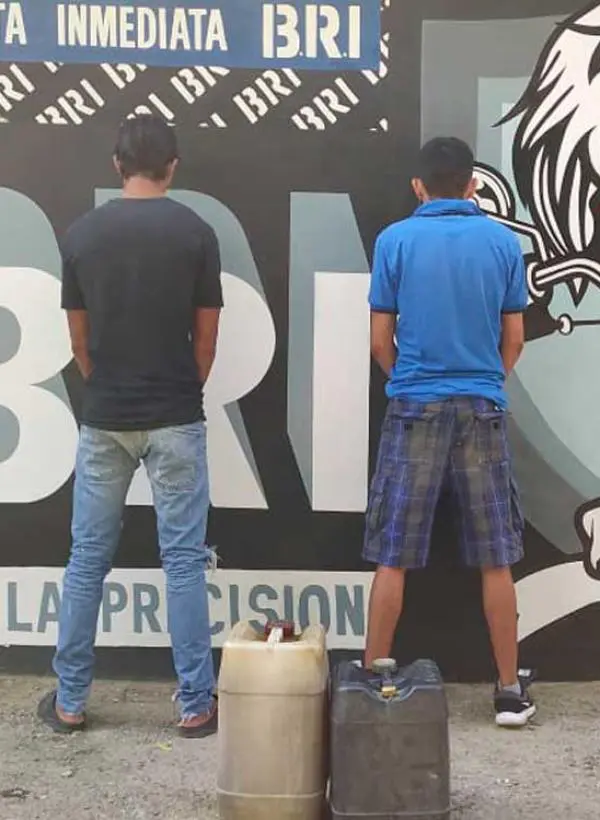 Omar Alfredo Meza, alias «Chivo Seco», Greth Anthony Vargas y un menor de 17 años apodado «Negrito«, fueron detenidos por funcionarios del BRI en Pueblo Nuevo, luego de ofertar a través de redes sociales y WhatsApp, cada litro de gasolina a 2.70 dólares, revelando que tenían 40 litros. A estos se les decomisaron 2 bidones repletos del combustible.